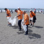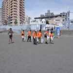 海のゴミを集めるために、片瀬東浜に集合した藤沢市興業公社の精鋭カッパ~♪