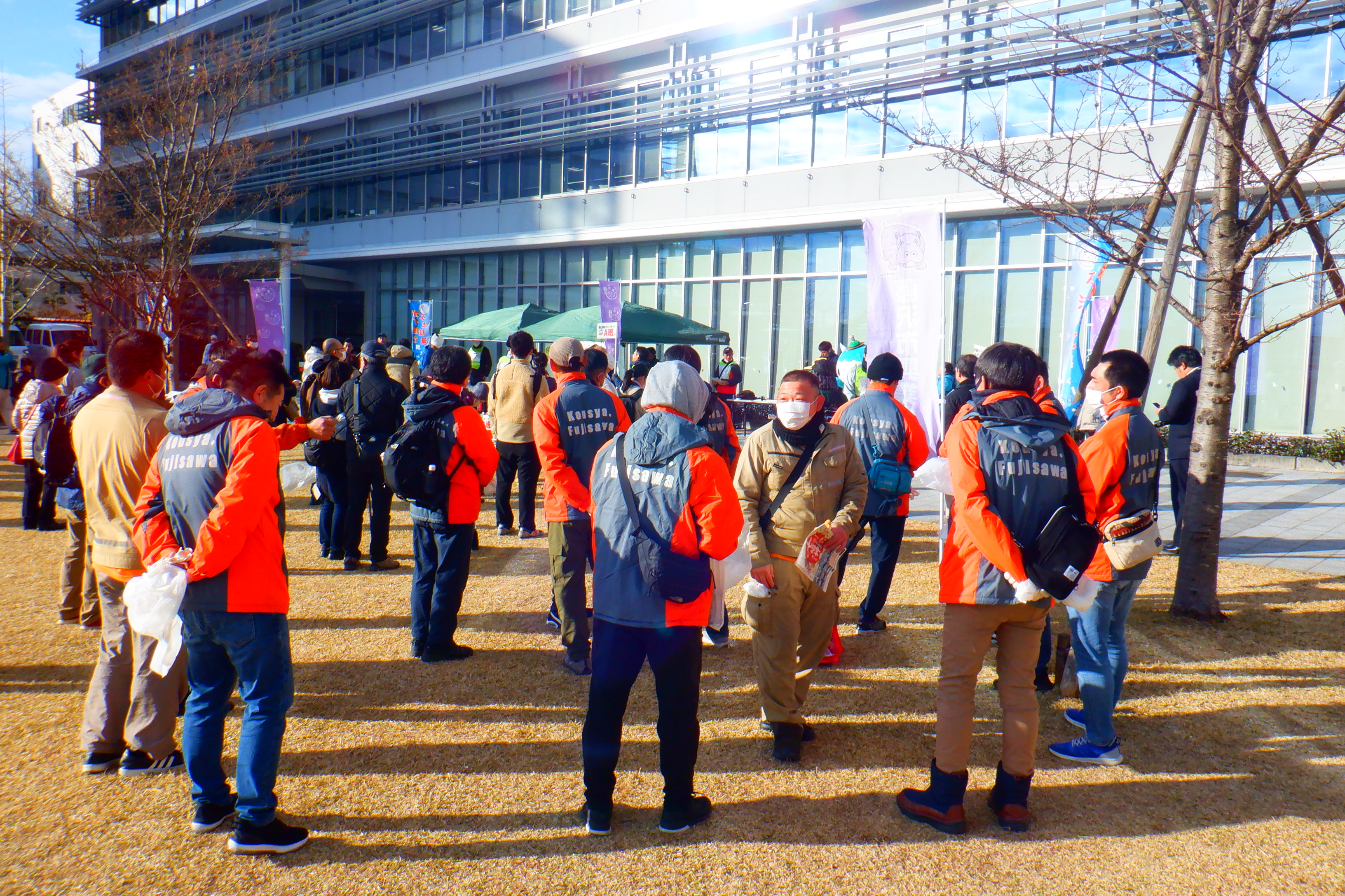 朝早くにもかかわらず藤沢市役所サンライズ広場にたくさんの人たちが集まっていたカッパ~♪